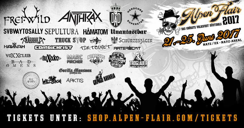 Nicht nur die Besucher reisen aus aller Herren Länder an, sondern auch die Künstler haben zum Teil viele Kilometer auf dem Buckel, bevor sie bei der Alpen Flair Artist Production eingecheckt werden und dann final die Bühne entern. Die Metalbands ANTHRAX und SEPULTURA z.B. kommen aus USA und Brasilien, HARDCORE SUPERSTAR starten von Stockholm (Schweden) aus und sammeln auf dem Weg vielleicht ihre kollegen von DAD in Dänemark ein.