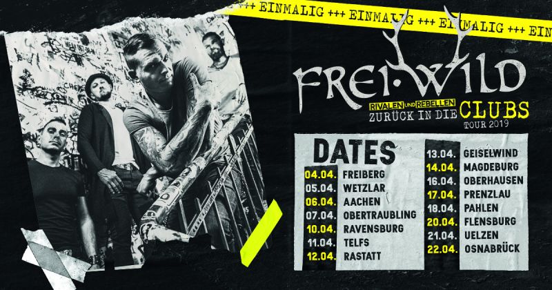 Bevor wir am 5. Juli 2019 die mit Riesen Abstand bisher größte Frei.Wild Show in Frankfurts Stadion, der Commerzbank-Arena, feiern, wollen wir euch nochmal zurück zum Asphalt entführen. Zurück in lange zurückliegende aber doch mit unfassbar geilen Erinnerungen verbundenen "Größenordnungen". 15 coole, enge weil vor allem kleine Clubs verteilt über die gesamte Republik stehen für uns bereit. Mit dabei sind ausschließlich Städte, in denen wir noch nie zu Gast waren.