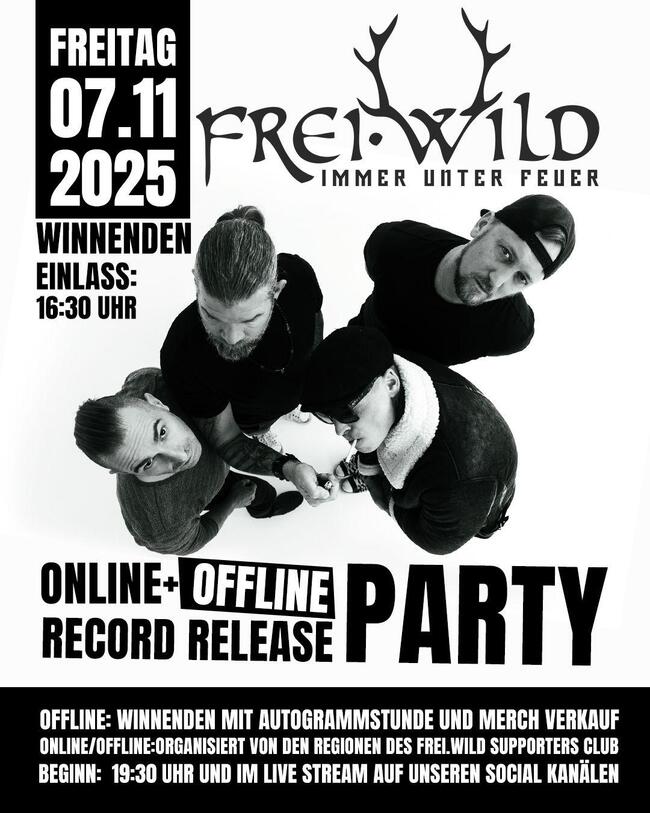 Also, macht euch den Kaffee stark, die Boxen lauter und den Kopf frei. Pünktlich zum Frühstück oder zur Rush Hour im Stau starten wir gemeinsam in den heißesten Releasetag des Jahres. Lasst euch mitreißen, taucht ein, fühlt, schreit, lebt – das hier ist unser gemeinsames Feuer. Vielleicht wird diese Radioshow künftig sogar wöchentlich fortgesetzt – wer weiß, was da noch brennt. Also jetzt unbedingt sofort auf Spotify & Co. tipen, das neue Album hoch und runter hören, die Songs in Eure Playlisten packen und Teil der Frei.Wild Streaming-Community werden.